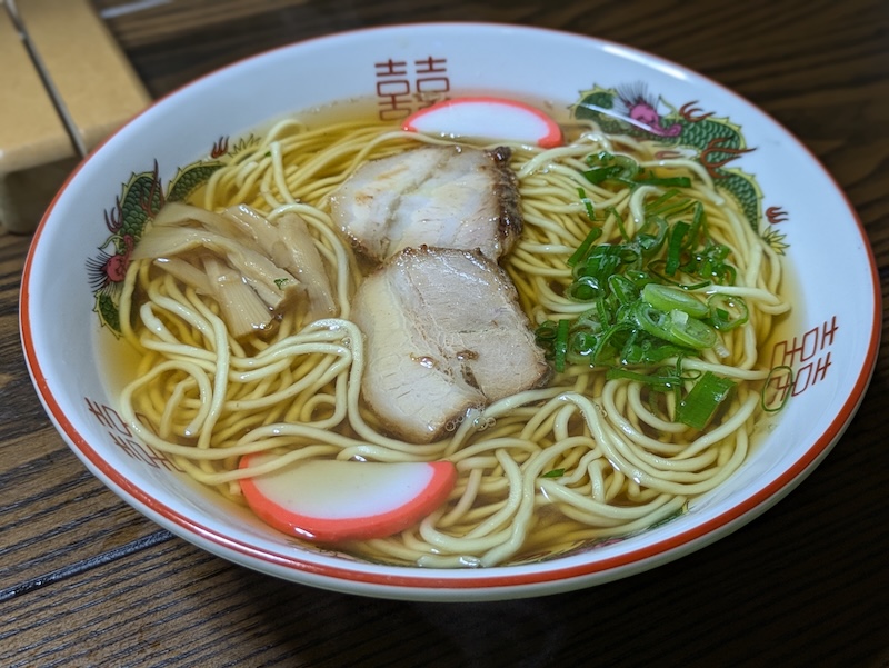 動物系の脂をほとんど使わない澄んだスープに、中太ストレート麺・チャーシュー・赤縁の蒲鉾という昭和の中華そばの正しい姿が揃っています。