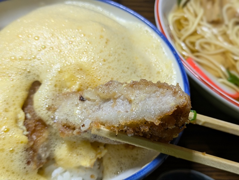 甘さを抑えた出汁主体の割り下と、驚くほど柔らかく仕立てられた豚肉とのコンビネーションは秀逸で、中華そばを平らげた後だというのに、気がつけばカツ丼もペロリと完食していました。