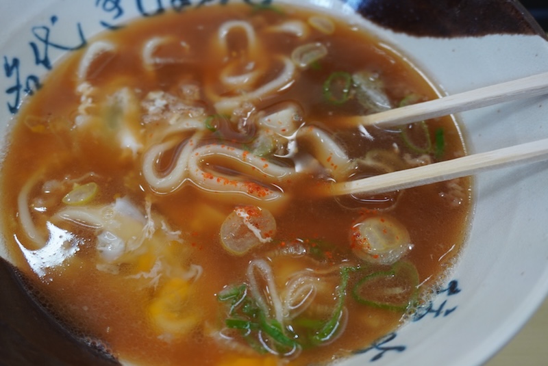 しかし、住よしの一杯は厚削り節を使った力強い出汁と幅広の麺が織りなす奥深い味わいで、むしろ一度食べると忘れられない魅力を持っています。