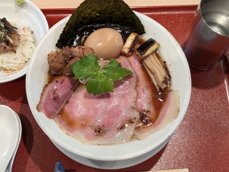 今回注文したのは「紀州鴨そば」と「鴨とり飯」、そして公式SNSで告知されていた数量限定の鴨もも肉トッピングです。
