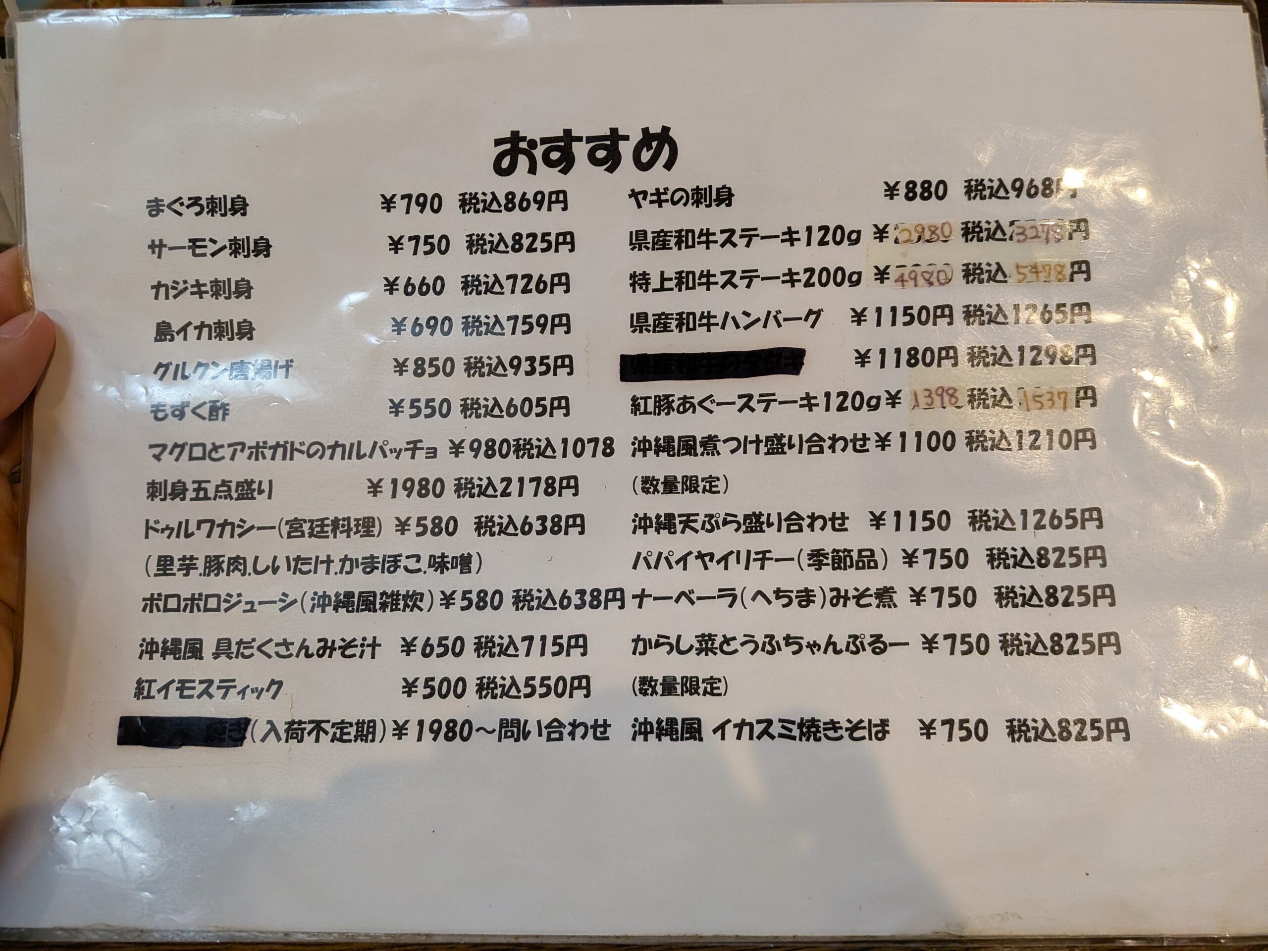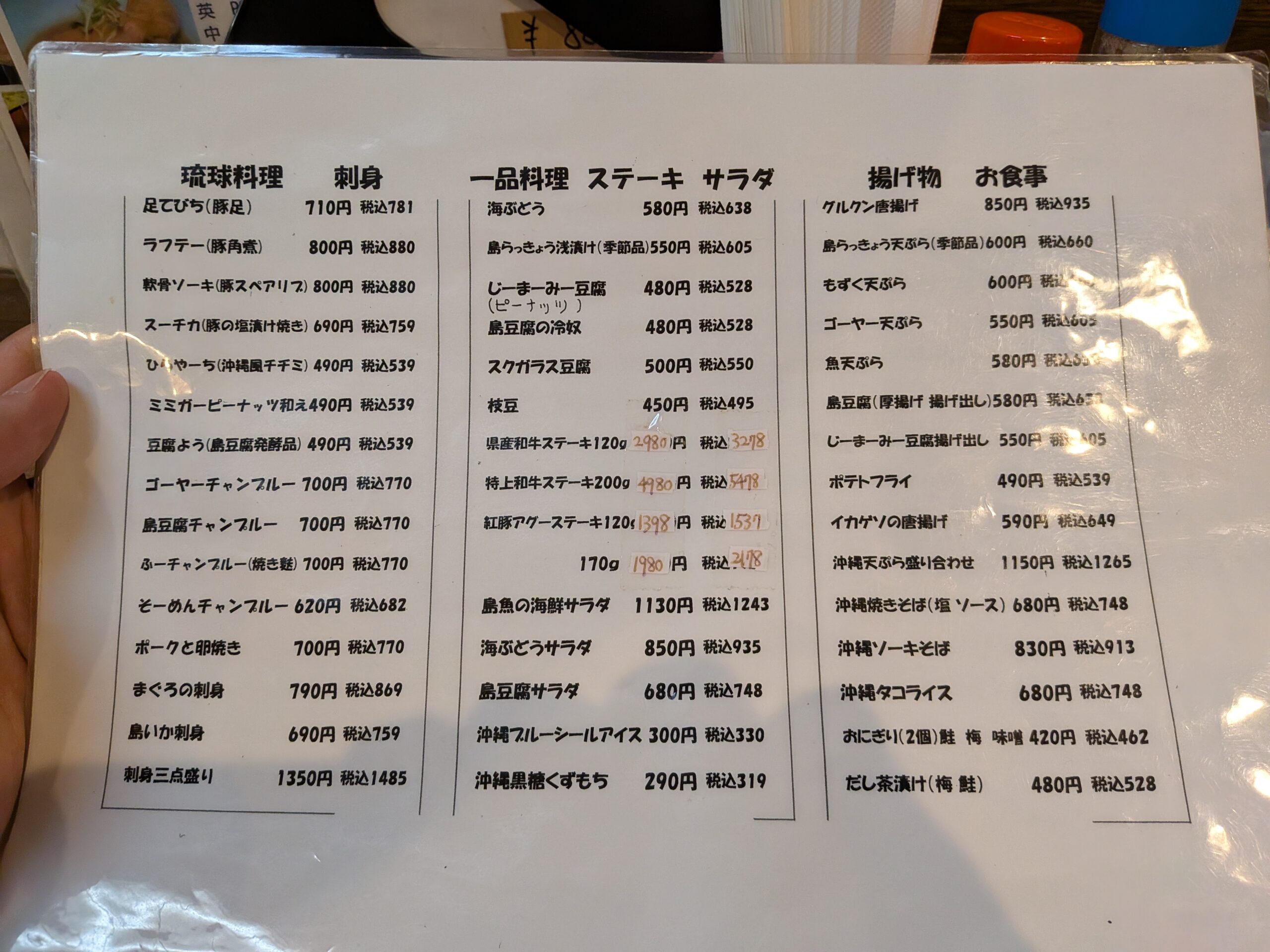葵屋 西町本店の品書きは、琉球の家庭料理から現代的な創作料理まで幅広く構成されており、沖縄の食文化を余すことなく体験できる充実した内容です。