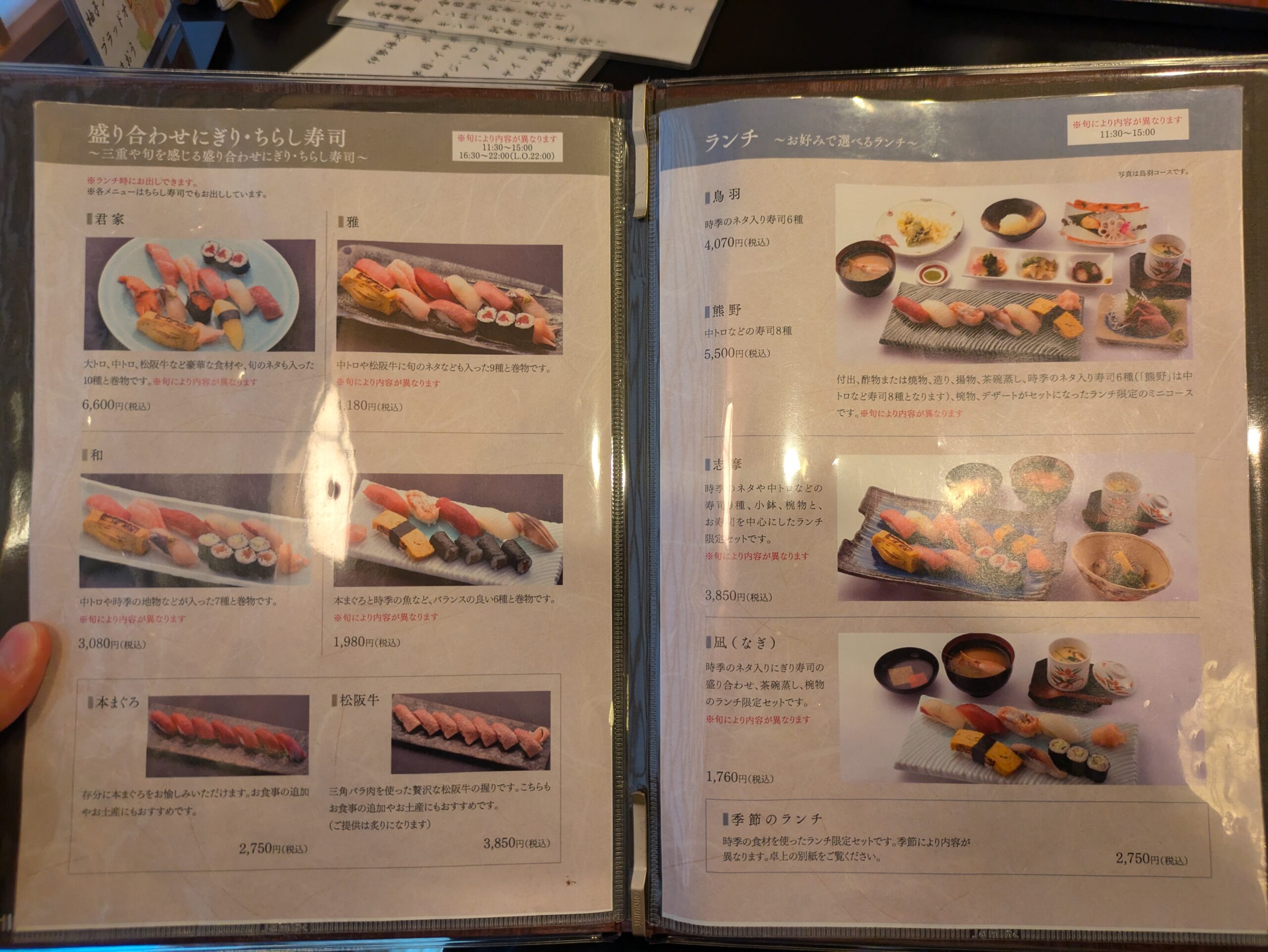 全メニューと価格帯——ランチコース・寿司会席・松阪牛にぎり・一品料理を一覧でご紹介