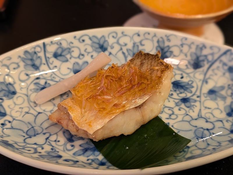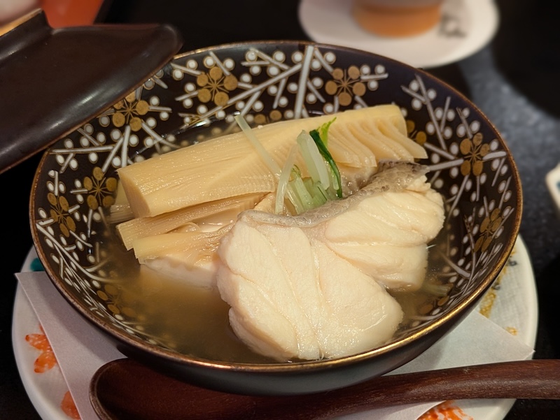 この皿が特別なのは食材だけではありません。昆布と鰹の旨みが深く重なり合った出汁が、それら全ての食材を静かにつなぎ止め、通奏低音のように皿全体を支えています。最初の一皿で、この日の食体験が本物であることを確信しました。