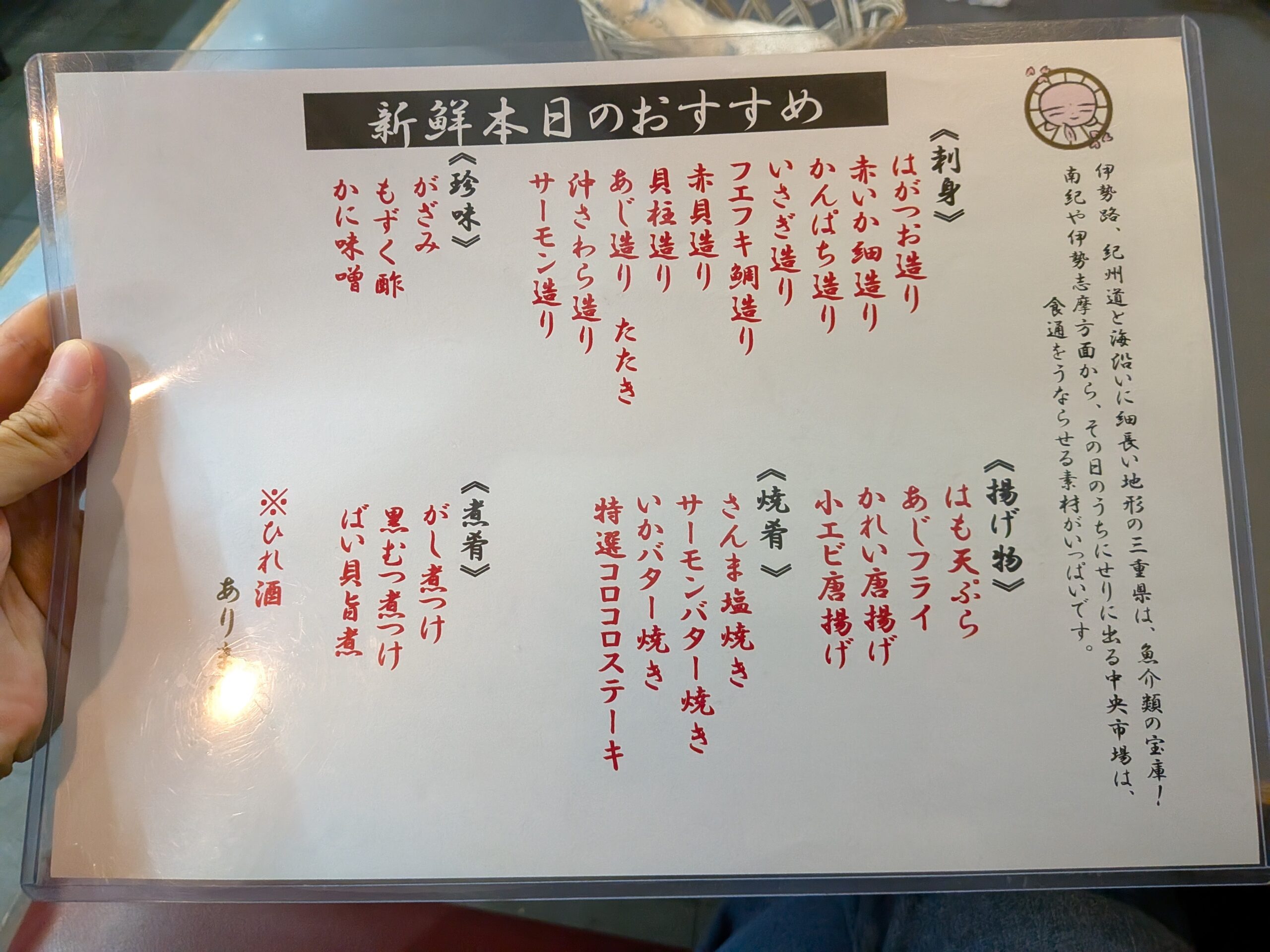 伊勢湾から届く旬の鮮魚と、揚げたて・焼きたての一品料理が居酒屋価格で楽しめる、食へのこだわりが随所に光る一軒です。