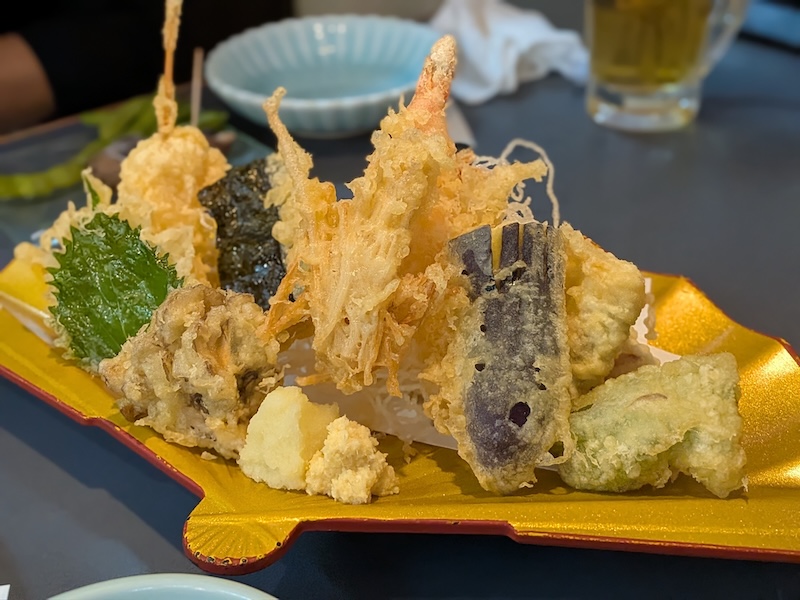 天ぷらの盛り合わせは、季節の野菜とえびがたっぷりと揃った一皿です。