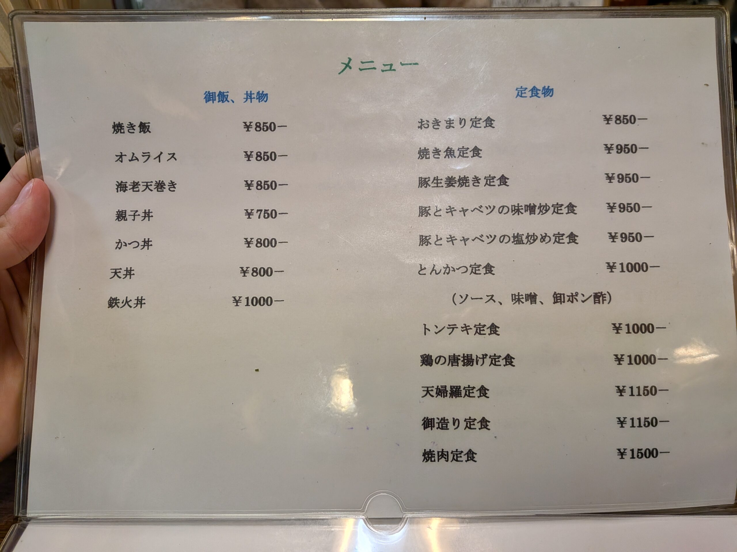 少し疲れた体に、昭和の食堂ならではの温かみが静かに染み渡るようで、席に腰を落ち着けるだけでもうほっとするものがありました。