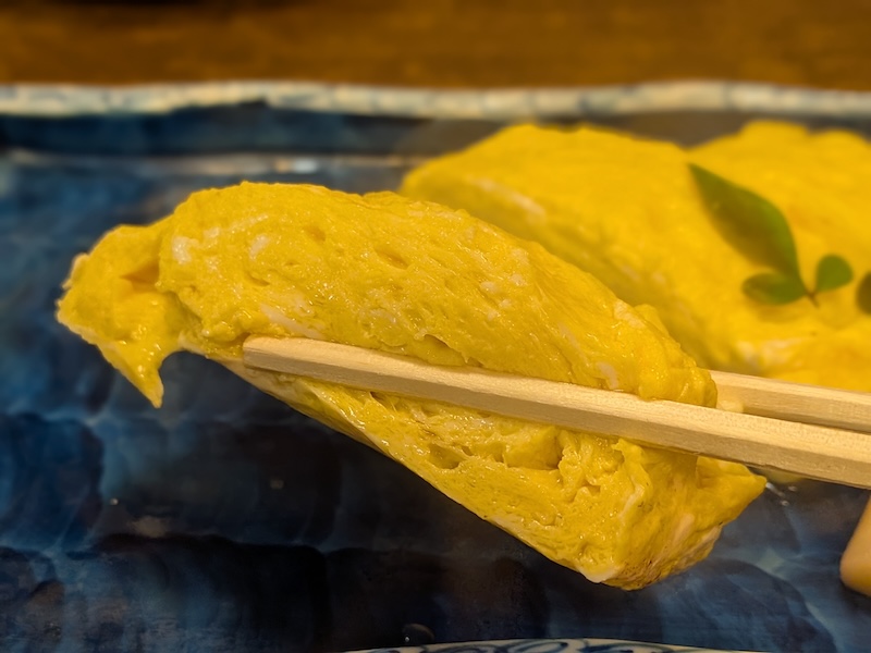 続いてだし巻き卵をいただきました。口に運んだ瞬間、ふわっとした繊細な食感とともに、丁寧に引いた和風出汁の旨味がやさしくほどけるように広がります。