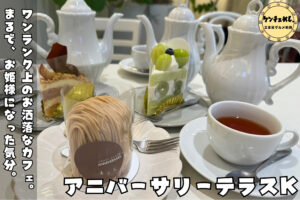 看板メニューのアフタヌーンティーは、ショーケースから選べるケーキにスコーンや紅茶が付いた贅沢なセットで、季節ごとに内容が変化。さらにミルフィーユやチーズケーキなど単品スイーツも充実しており、イートインはもちろんテイクアウト利用にも便利です。
